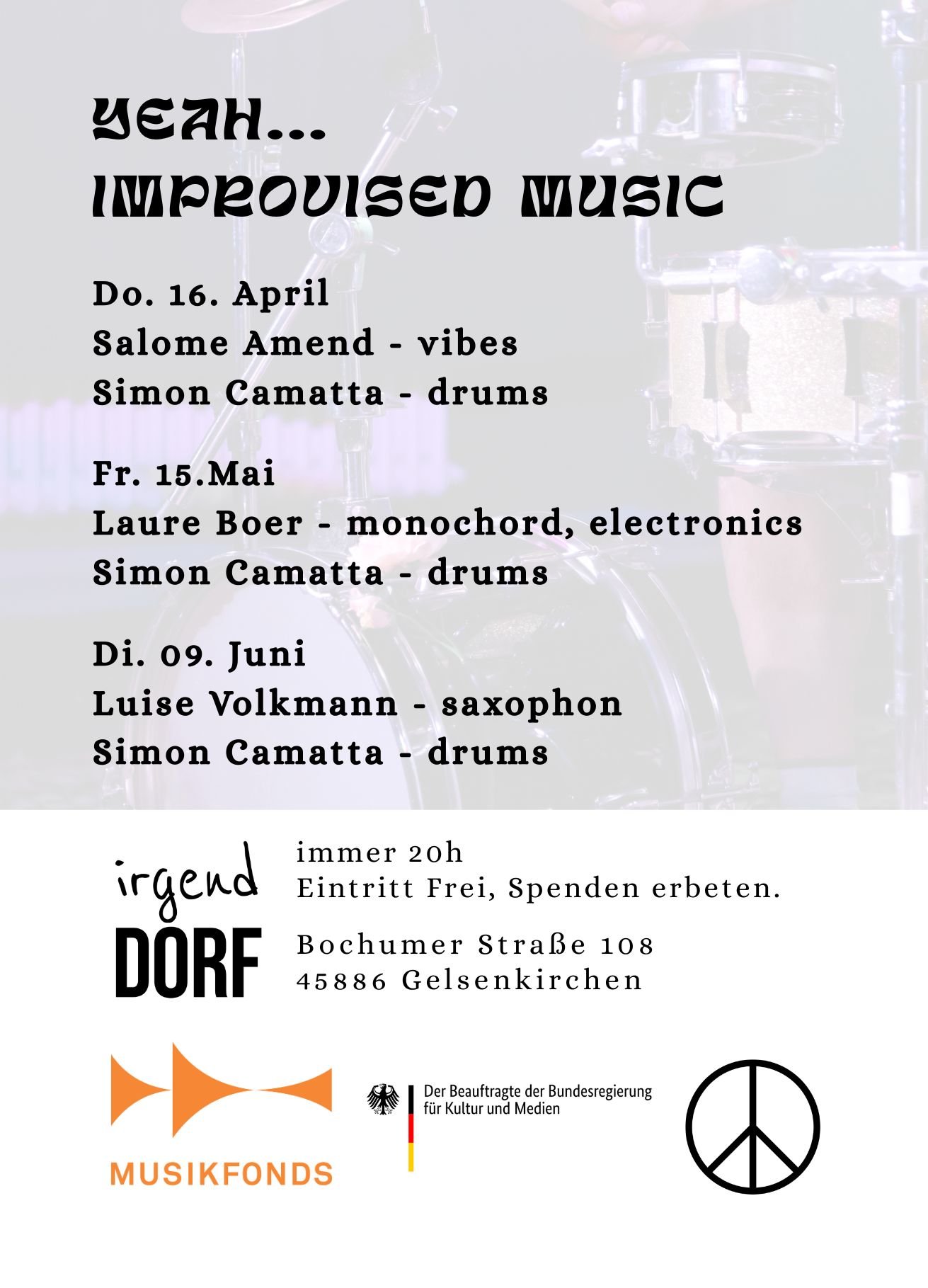 Schlagzeuger Simon Camatta trifft auf Laure Boer. Gemeinsam improvisieren sie – mit Drums, Monochord und Electronics.